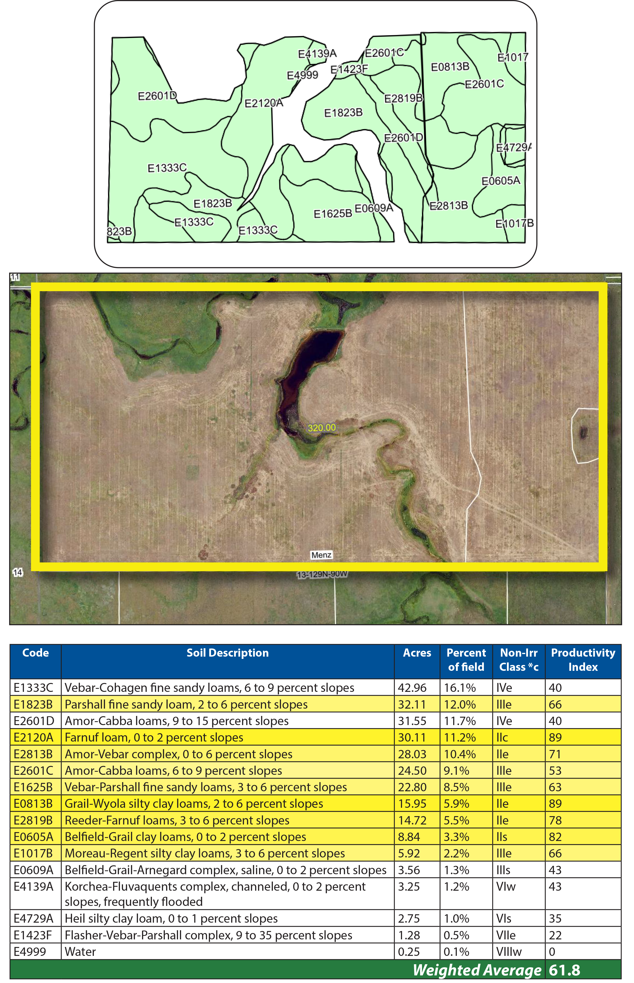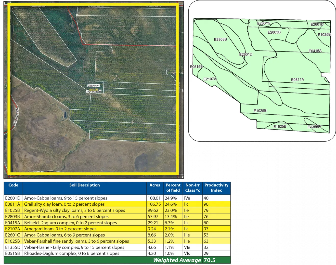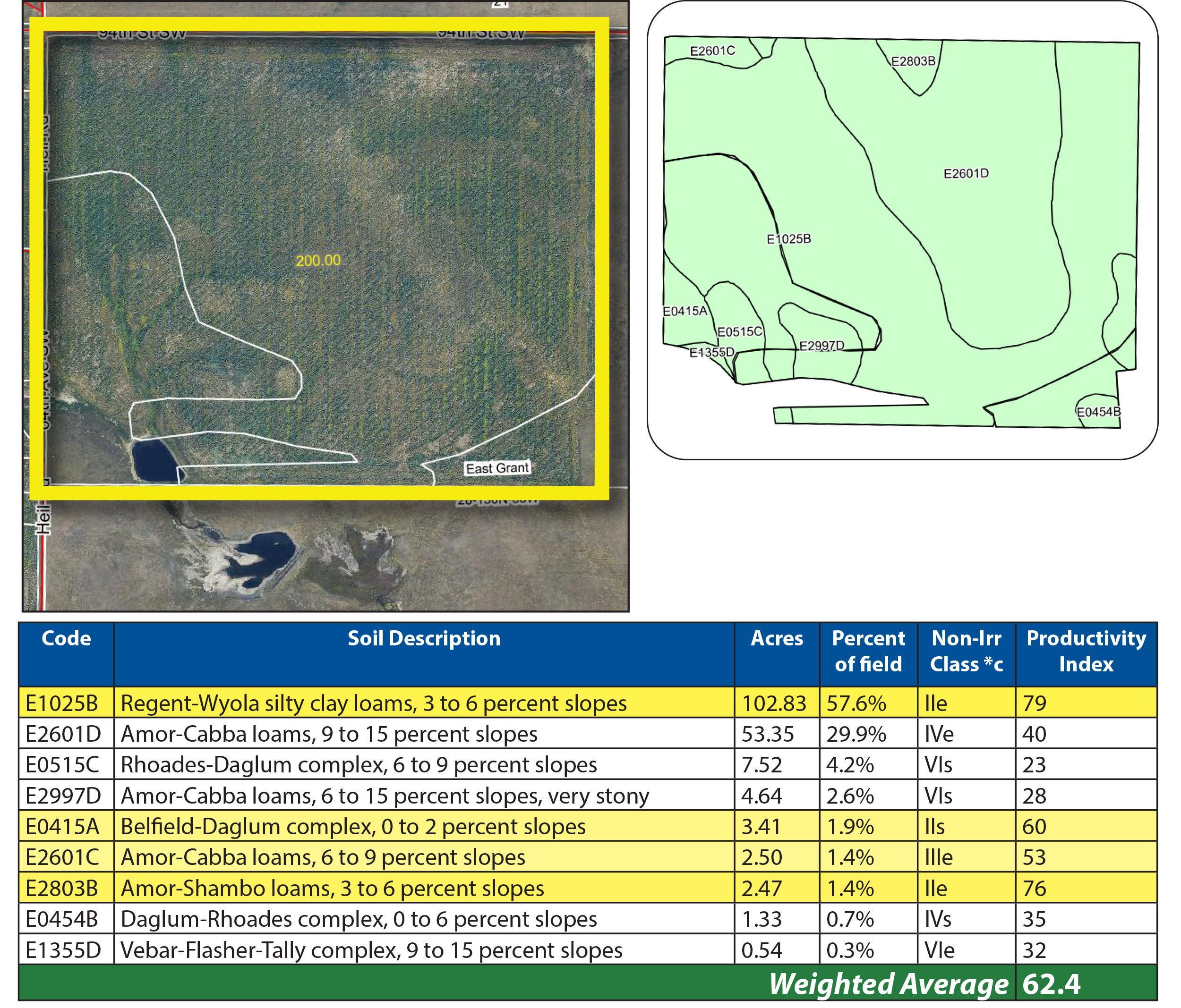 Parcel 2 is another half-section of cropland situated just 1.5 miles north of the Cedar River, near Morristown, SD. This property also features premium soils, including Amor, Shambo, and Grail Loams, with a strong SPI average of 64.6.